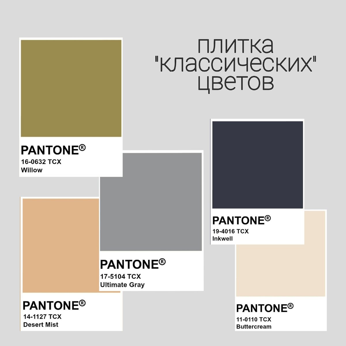 Институт цвета Пантон (Pantone Calor Institute) каждый сезон определяет и выпускает 4 палитры трендовых цветов. Пантон составил 2 палитры "крассических" оттенков и 2 палитры модных сезонных оттенков.