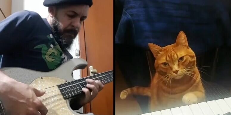 Словом, свершилась сенсация. Коту, как это заведено в нашем высокотехнологичном веке, уже завели собственный аккаунт на площадке TikTok – свыше 18 тыс. подписчиков уже следят за исполнительским искусством котофея. Но любой природный талант заслуживает развития и совершенствования, иначе он попросту погибнет на корню. И надо же такому случиться – ролики с участием кота-музыканта попались на глаза известному бас-гитаристу Джеффину Родегери (Jeffin Rodeghery). Джеффин решил использовать способности котэ по-своему: он превратил одну из фортепианных фантазий кота в самое настоящее бас-соло.