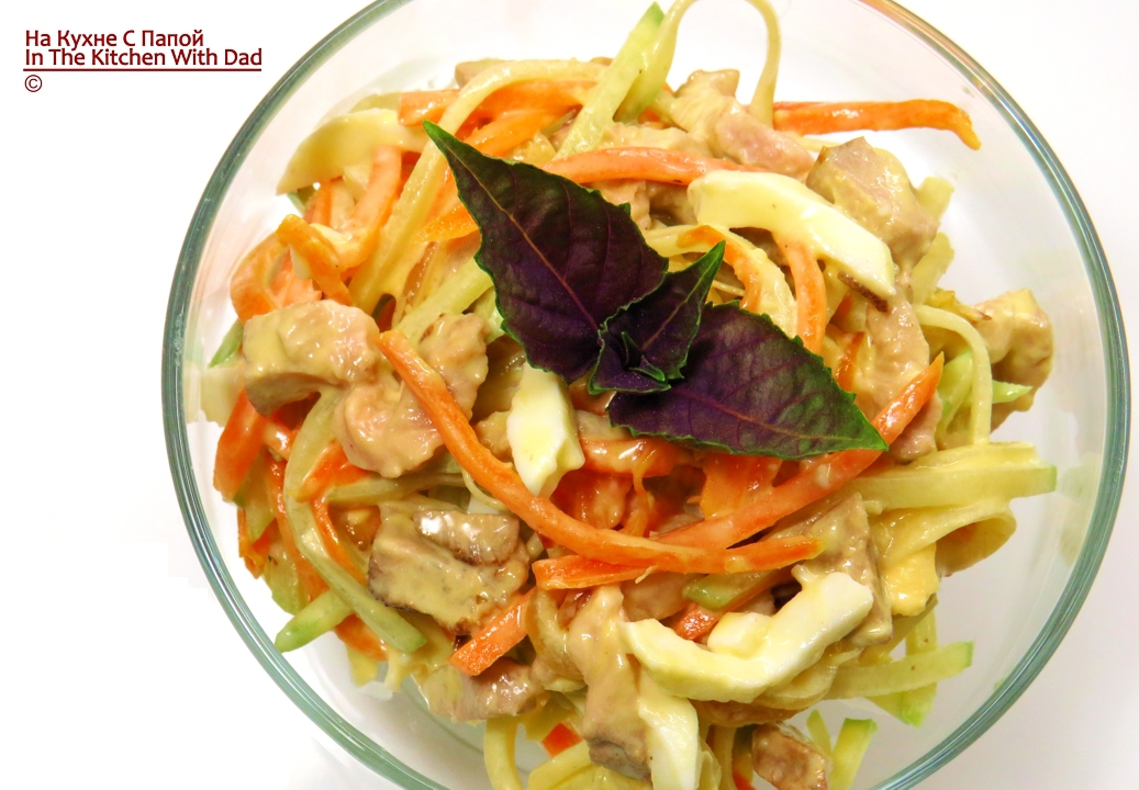 Замена говядины на куриное мясо делает салат уже другим по вкусу.