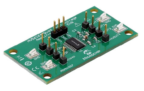 Оценочная плата ADM01007 Microchip Technology включает в себя микросхему HV56264 с внешними резисторами, образующую четыре независимых высоковольтных неинвертирующих усилителя с коэффициентом усиления 68.3. Выходные каналы нагружены конденсаторами 15 пФ/250 В. Для оценки устройства требуются два источника питания 5 В и 225 В, генератор сигналов и осциллограф.