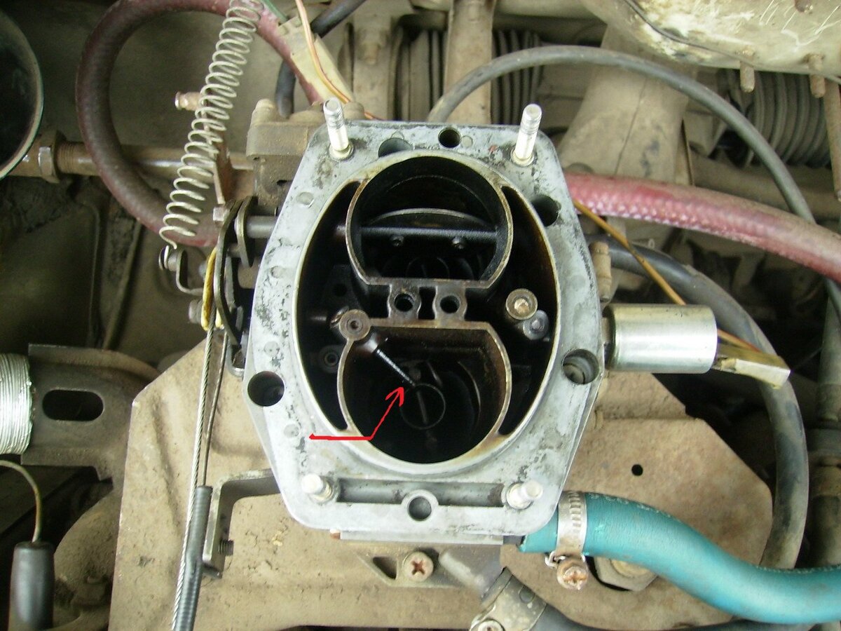 Самое простое простое, что можно проверить в карбюраторе, это снять корпус воздушного фильтра, подкачать бензин ручной подкачкой, и понажимать на педель (дроссель). Носик карбюратора (помечен стрелкой) должен прыскать бензин в первичную камеру