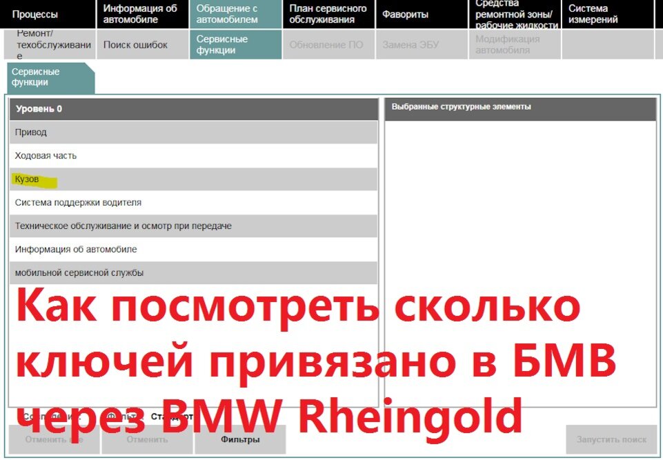 1. Обращение с автомобилем -> Сервисные функции ->Кузов