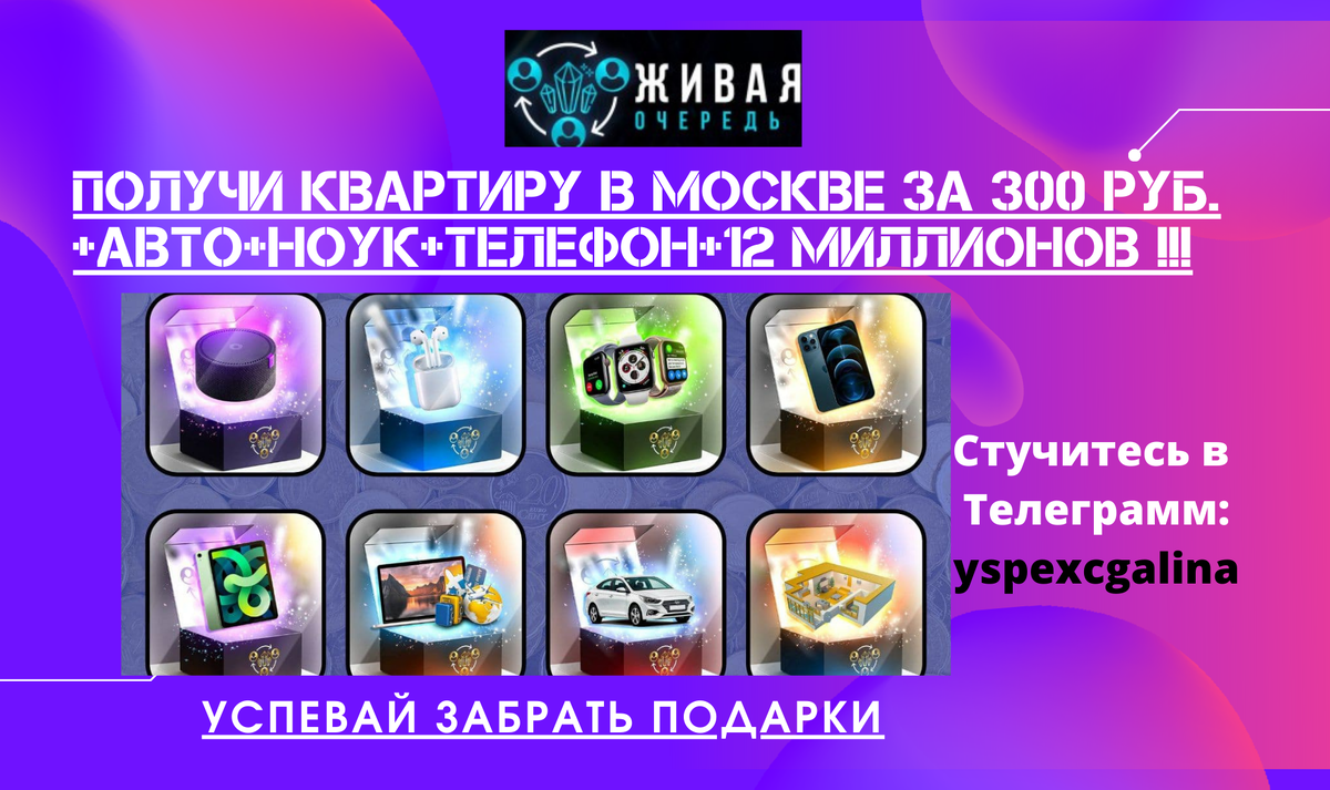 Те кто сейчас оплатит всего то 300 руб-будут в числе 1% успешных и богатых. т.к только 7 апреля 2021 года стартовал проект Живая Очередь-по принципу-Лифт.