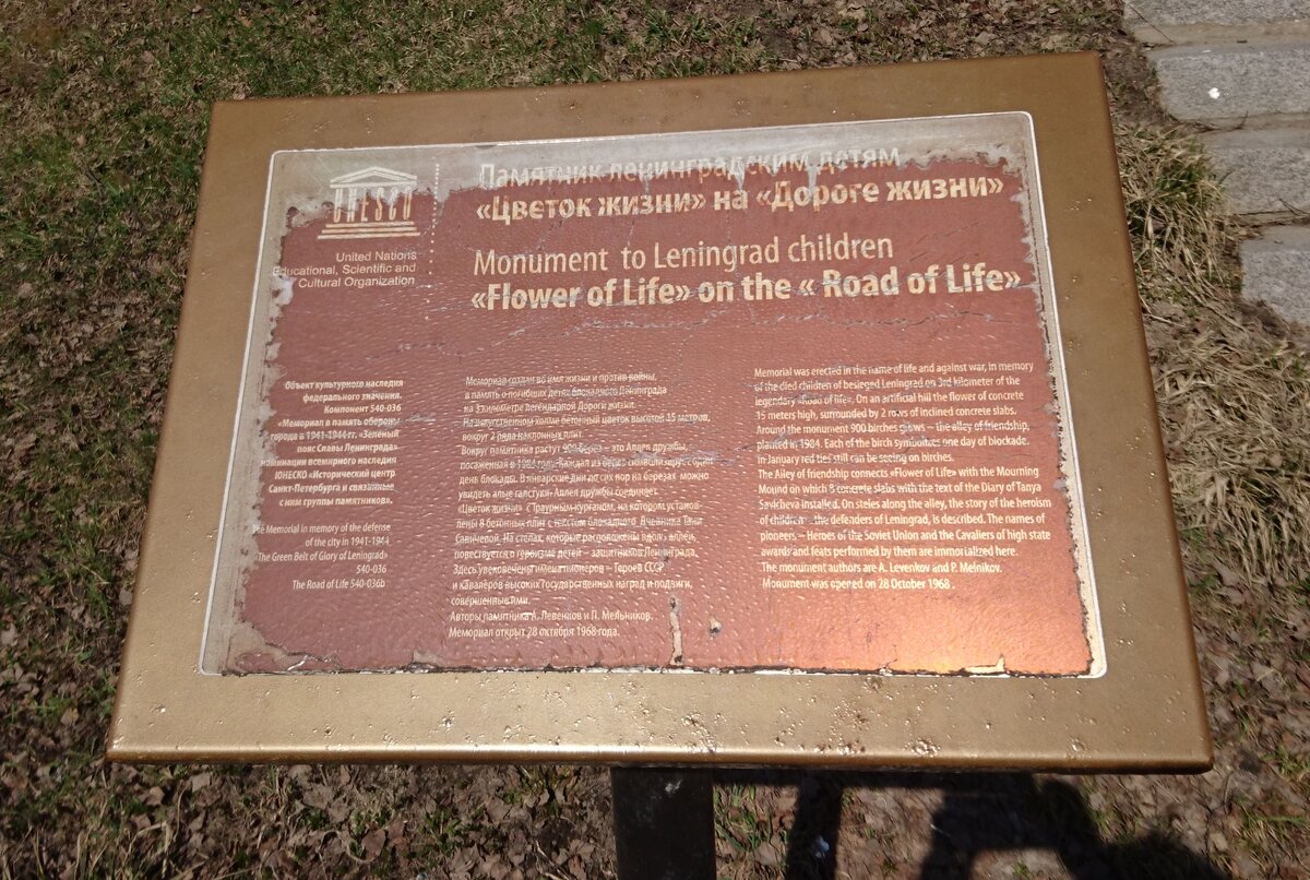 Называется комплекс "Цветок жизни". Установлен он в память о детях, живших в осажденном, блокадном Ленинграде. Расположен во Всеволожском районе Ленинградской области на 3 км Дороги жизни.