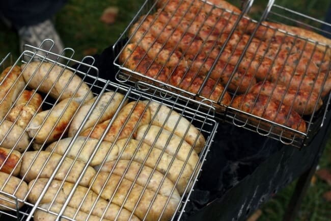 Как только мясо будет снято, просто положите решетку обратно на костер. Можете подкинуть дров, чтобы огонь вновь хорошо разгорелся. Подержите по несколько минут с каждой стороны и протрите ее специальной железной щеткой для барбекюшниц.
