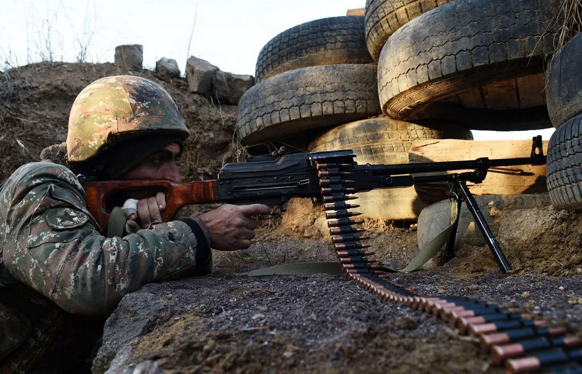 В нашем секторе обороны на фронте в 400-500 метров стреляло всего несколько автоматов.То и дело немолодой контрактник-гранатомётчик бегал с РПГ туда-сюда по окопу, крича что-то невнятное на арцахском диалекте армянского языка, который понять не так-то и просто даже армянину из самой Армении.