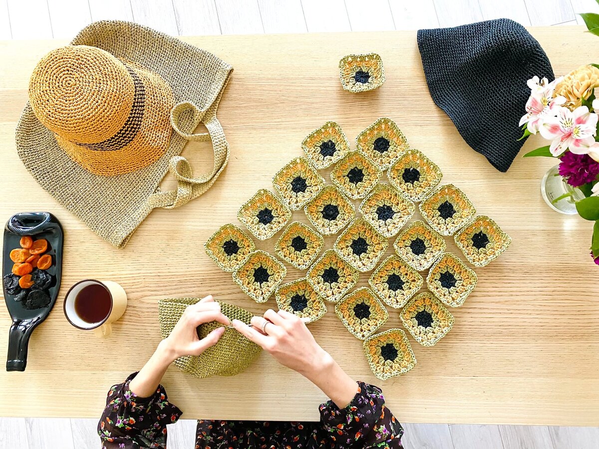 Сумка из рафии узором «бабушкин квадрат». Смотри видеоурок