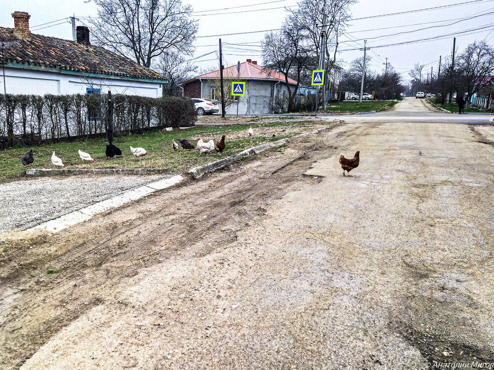 Сегодня идем по Октябрьской улице. Это примерно посередине между центральной улицей Ленина и южной городской окраиной. Не самая красивая, но и не самая плохая. Обычная старокрымская улица с домами под черепичной крышей и спокойно разгуливающими курами.