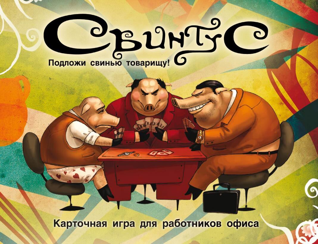 Игра очень похожа на «Уно», в ней также есть карты с цифрами 4х разных цветов и спецкарты. Цель игры – избавиться от всех карт. Весь интерес и динамику как раз задают специальные «свинячьи» карты. Спецкарты тоже 4х цветов, за исключением карты «Полисвин», он бесцветный. Выложив «Полисвина» на любую карту ты по своему желанию задаешь цвет следующей карты. Картой «Перехрюк» ты изменишь порядок хода игроков в другую сторону. Карта «Тихохрюн» заставит всех молчать, пока ты не сходишь еще раз. Видишь, что следующий игрок после тебя вот-вот избавится от своих карт, клади под него «Захрапин», и он пропустит ход, или «Хапеж», и тогда он возьмет три карты и пропустит ход. А когда все расслабятся, выложи «Хлопкопыт» и накрой его ладонью. Кто последний положит ладонь на твою, тот еще возьмет две карты.