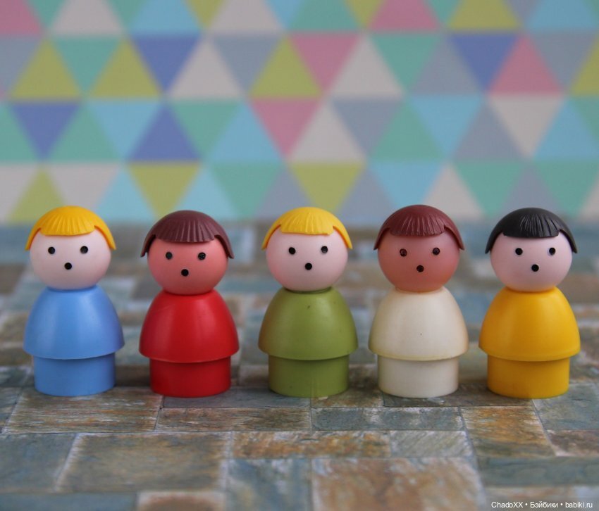 Из обширнейшего мира Little people в сотни различных моделей (человечков, мебели, транспорта, построек) советской фабрикой с небольшими изменениями были взяты формы около пары десятков элементов — человечков и аксессуаров.