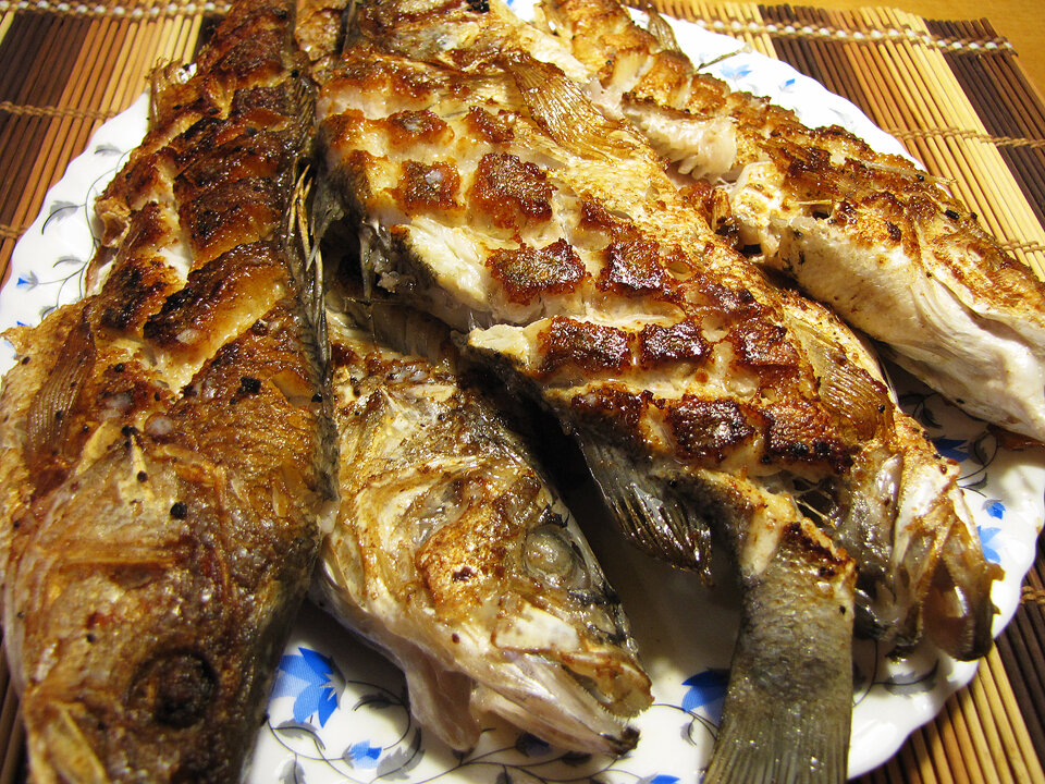Итак, меня угостили рыбой. Это была не очень большая, но аппетитная рыба. Благодетели путались в показаниях, что это за такая рыба и как её зовут. То это были караси, то окуни, но по виду не было похоже ни на то, ни на другое. Сам я в рыбе не ахти какой специалист, поэтому немного поковырявшись в Интернете, решил, что не так уж и важно название. Кажется, балхашский окунь, но могу и ошибаться. Важно тут, что, судя по виду, рыба это пресноводная, а значит, весьма костлявая. Так что при приготовлении необходимо учитывать этот фактор. Отсюда и плясал.