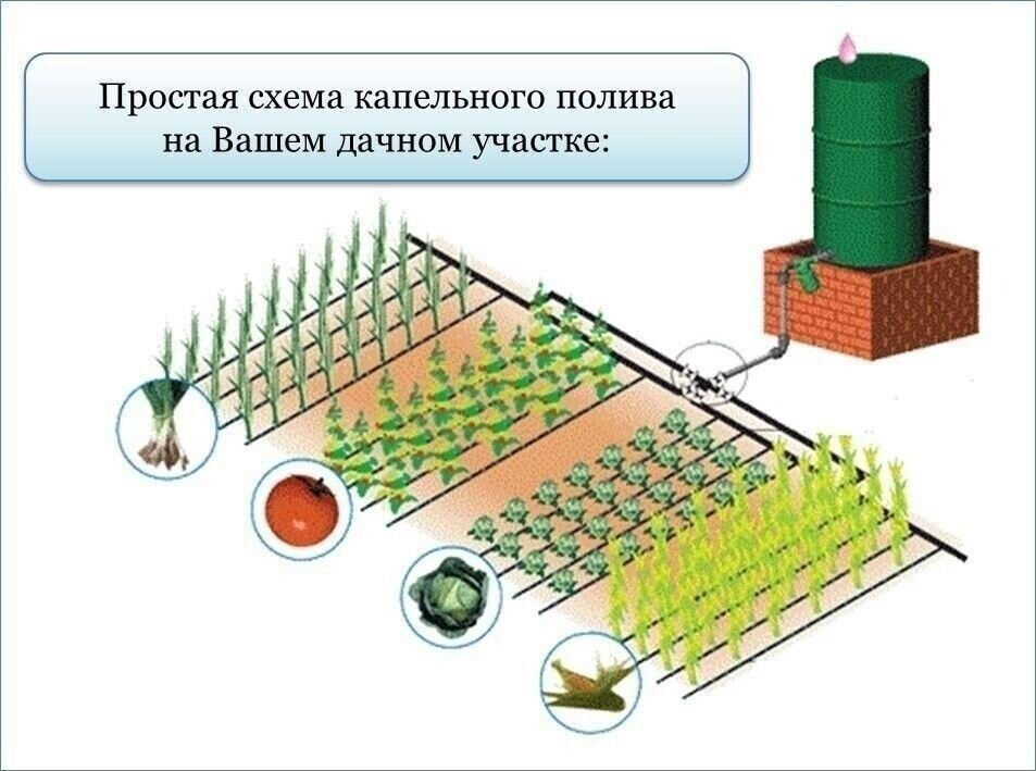 Суть капельного полива в том, что вода подается к растениям не периодически и большими объемами, а постоянно, но по чуть-чуть.