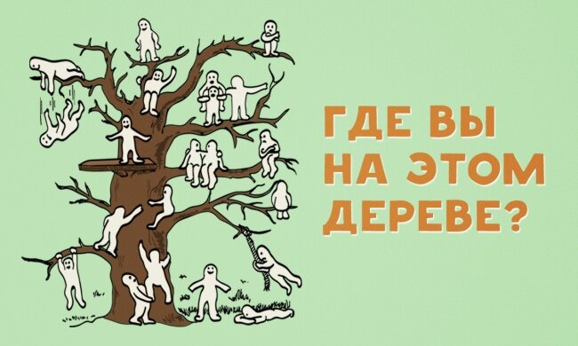 У каждого из этих человечков на дереве разное настроение, и они занимают различное положение. Для начала определите, какой из них больше всего похож на вас. После этого выберите человечка, на которого вы бы хотели быть похожи.