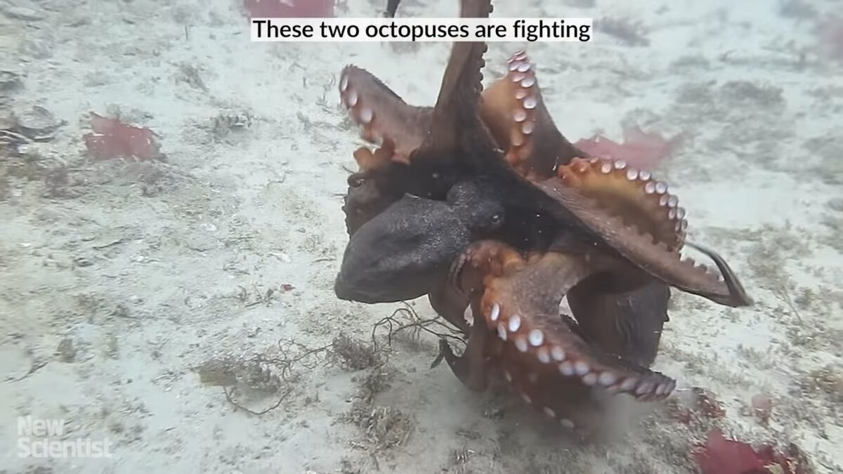 Морским биологам повезло снять на видео сражение двух осьминогов. Любопытно, что в ходе битвы эти создания кидаются друг в друга ракушками, камнями и иными, подвернувшимися под щупальца предметами. Такую возможность им дает имеющийся в теле, так называемый сифон. Он выполняет функцию «реактивного двигателя» при перемещении, а также позволяет моллюскам отгонять надоедливых рыб, чистить жилище от мусора, искать пищу и, наконец, перемещать предметы согласно своей цели. Так, во время драки осьминоги могут взять в щупальца камень и, направляя на него струю воды, забросить на нужное расстояние. Автор: Ирина Пасынкова (пользователь travelask.ru) Оригинал материала опубликован на сайте https://travelask.ru/blog/posts/5698-vo-vremya-draki-osminogi-kidayutsya-kamnyami-i-rakushkami-vo
