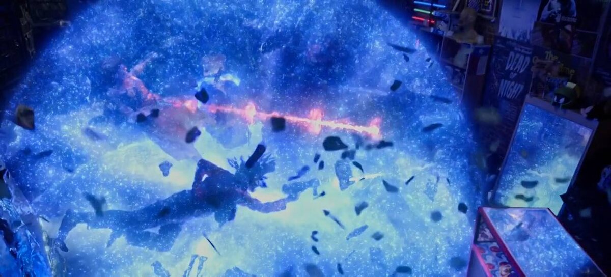 Одна из героинь фильма использует "временную бомбу", которая "замораживает" время. Я добавил свои комментарии, чтобы показать более подробно, что видно на этих кадрах.