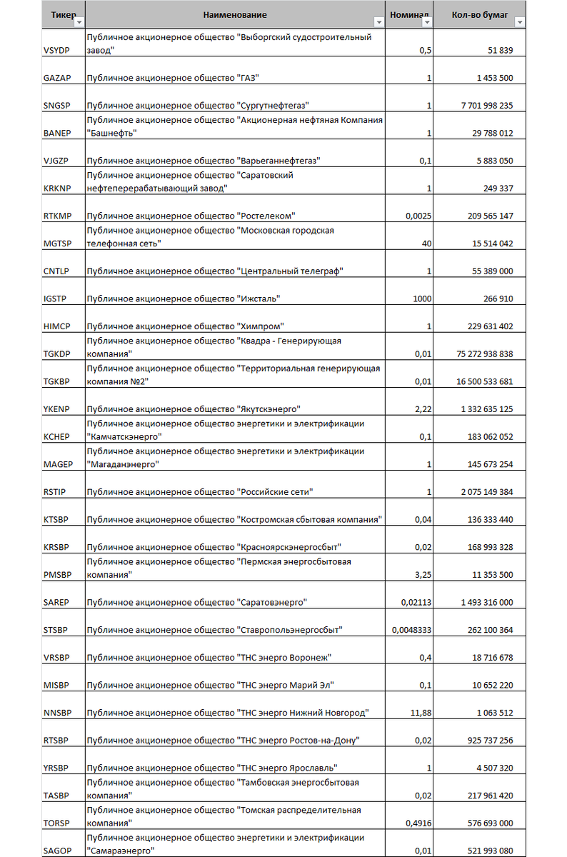 Некоторые же компании (представленные в таблице ниже) используют другие вариации начислений дивидендов на префы: