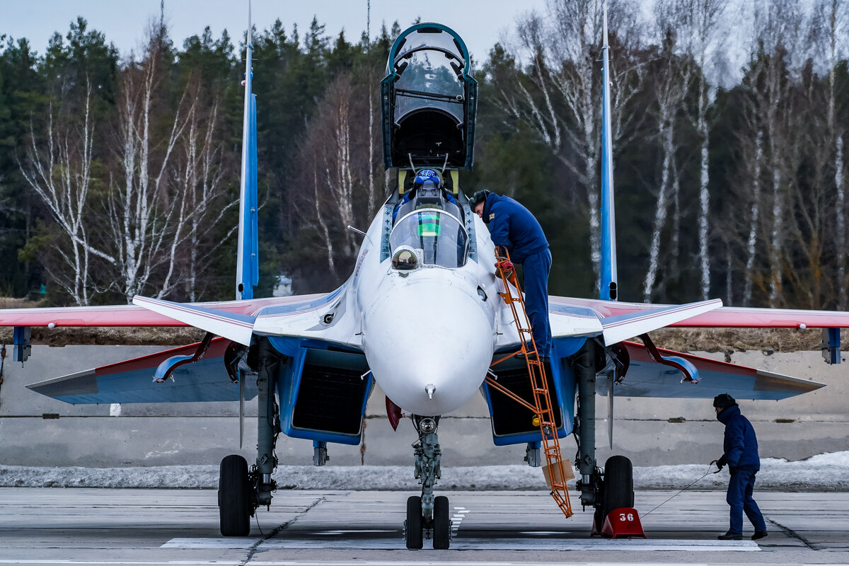 Размеры Су-30 сложно оценить в воздухе, в сравнении с людьми на земле проще понять, что длина 22 метра - это очень много!