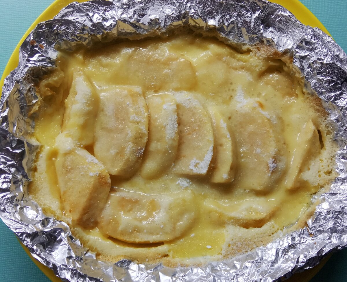 Далее заливаем яблоки полученной смесью и запекаем далее до готовности, еще 15-20 мин. при той же температуре.