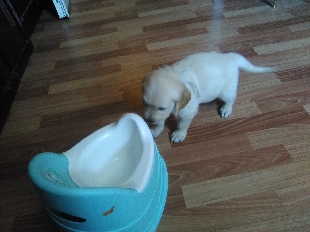 Дал ей попить молока - сразу сделала первую лужицу (прямоток)). Пеленки разложил на стыках линолеума, в коридоре не закончен ремонт. Через 10 минут собачка сделала первую кучку - убрал, и опять не заругаешь. Вообще, в первые часы присутствия щенка я ощущал себя как совершенный "чайник", в руки которого попало что-то классное, дорогое, новое, модное, а он не умеет этим пользоваться, боится сломать и ждет того, кто все расскажет..