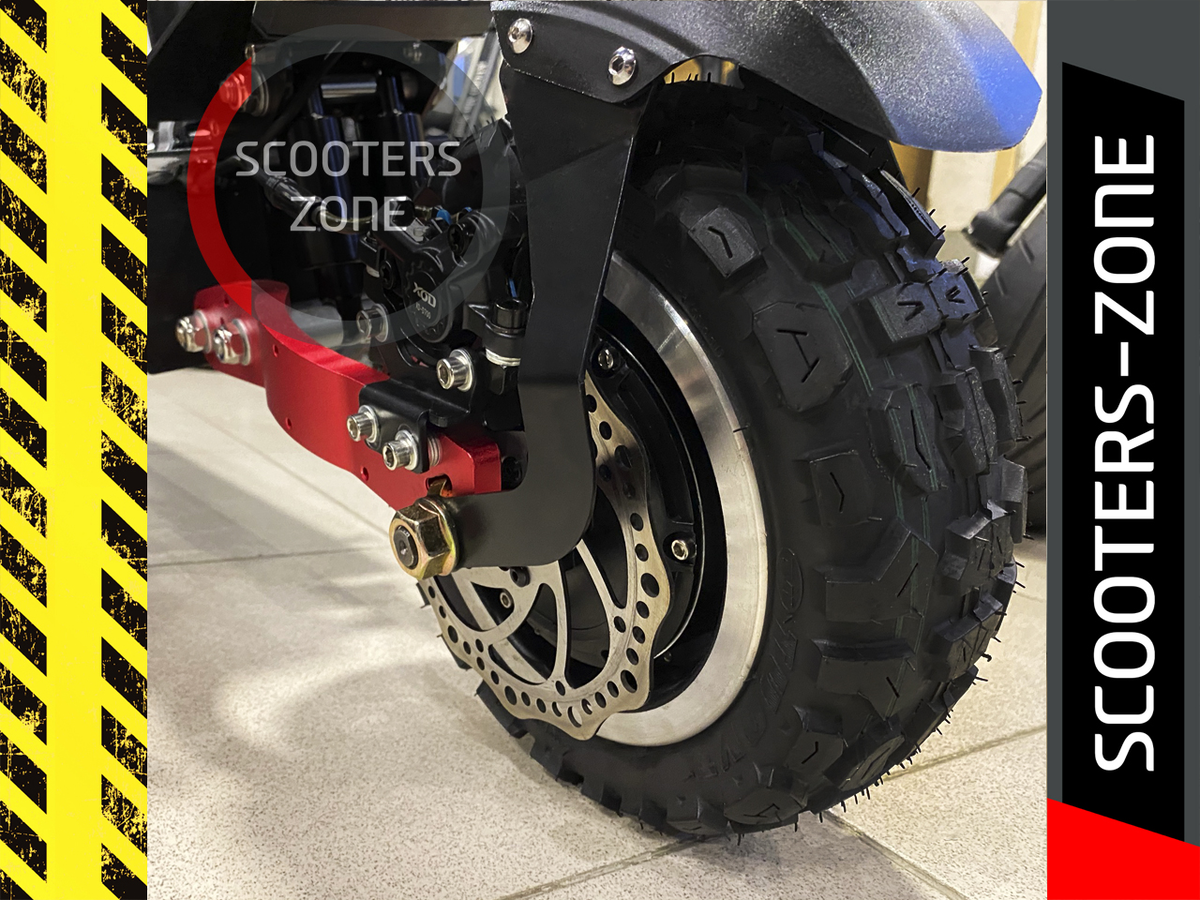 Идеальный вариант колес — диаметр восемь-десять дюймов. Такие колеса позволяют электросамокату отлично передвигается не только по ровному асфальту или брусчатке, но и по грунтовке, и такое передвижение не сильно напрягает электродвигатель и сажает АКБ.