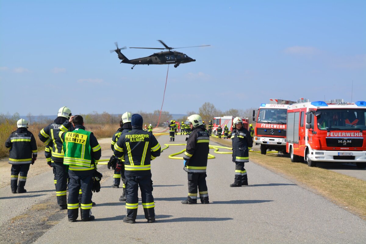 Пожарные бригады "Илмиц" и "Апетлон" действовали с полудня пятницы и были поддержаны двумя вертолетами "Черный ястреб" австрийских вооруженных сил с 10.30 утра в субботу. Каждый из вертолетов оснащен огнетушащим контейнером объемом 3000 л. Один вертолет заправляется на суше, второй может "дозаправиться" непосредственно озерной водой. "Тушение с помощью вертолета работает хорошо, было бы хорошо, если бы ветер стих", - сказал в субботу в 14:00 командующий районной пожарной охраны Рональд Шакович.