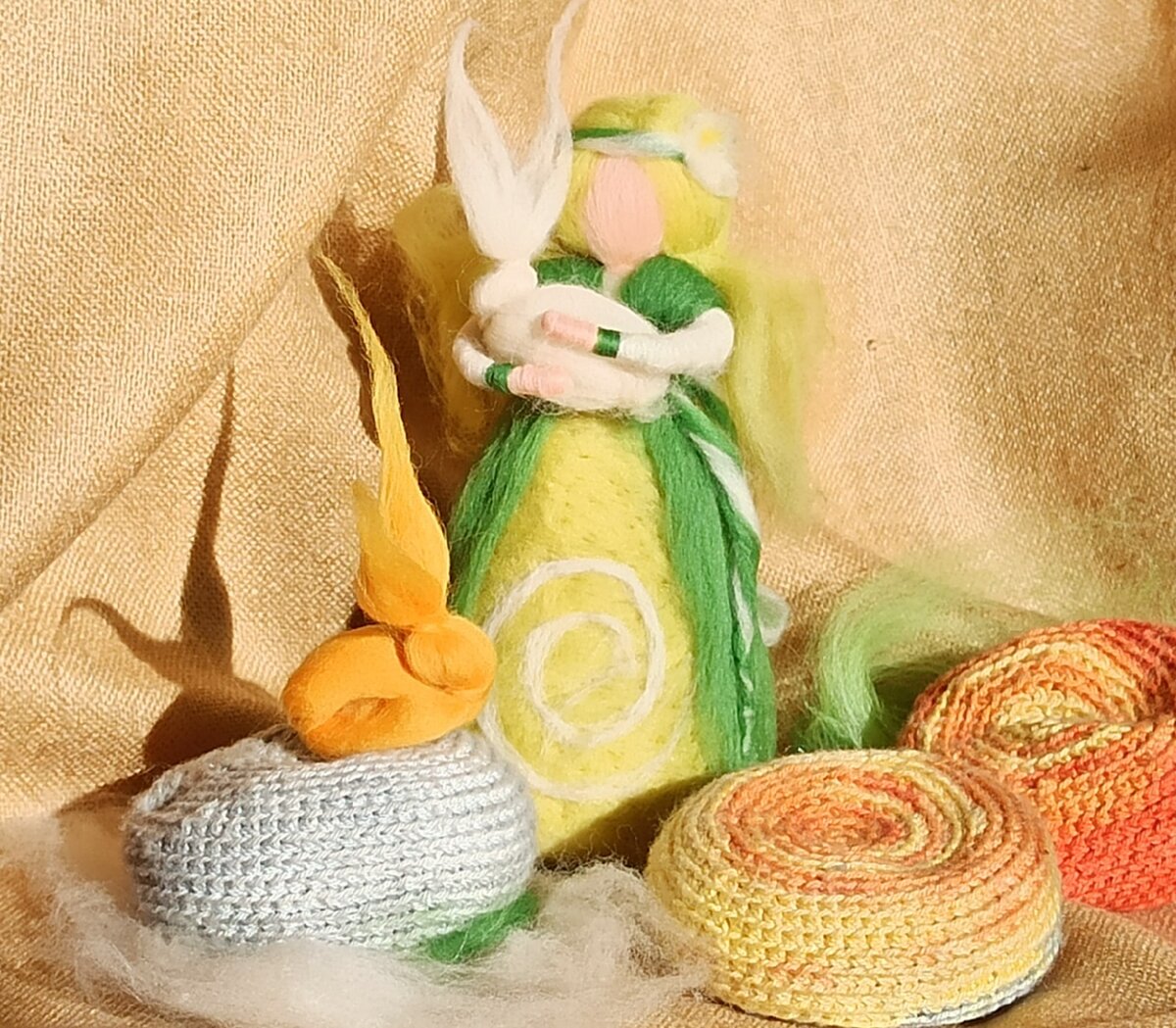 Лепка из пчелиного воска, живопись акварелью в технике "мокрым по мокрому", ткачество и валяние из шерсти, выпечка, показ сказки, изготовление мобилей и витражей... Волшебно! Интересно! Не всегда просто... Моим 1,3 года и 8 месяцев (нет, я ничего не путаю, да, так бывает).