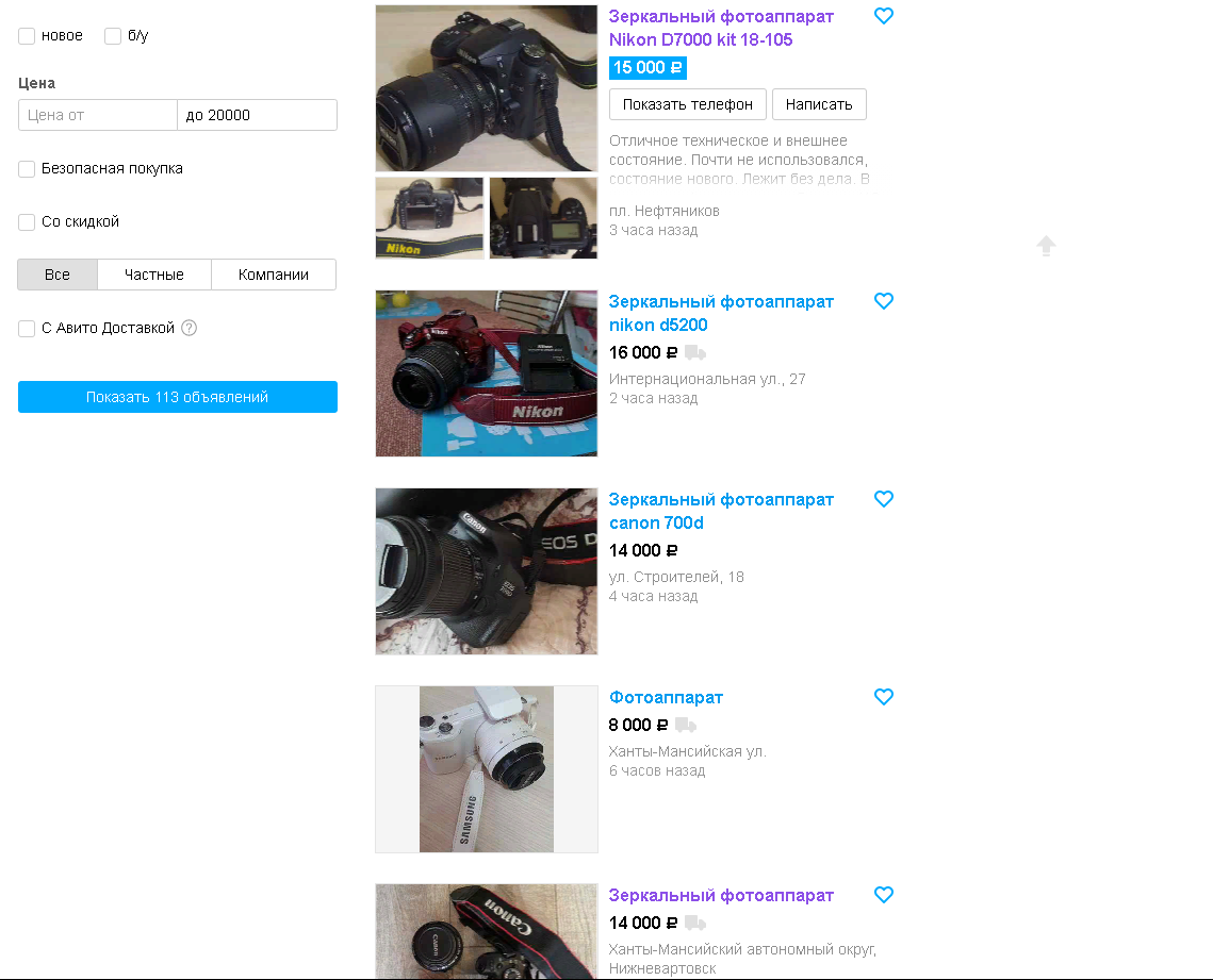 Дальше начинаем изучать более детально каждую фотографию, если их много, смотрим на внешний вид, на потёртости, сколы, ну вы понимаете.... нам же нужен фотоаппарат ну прям новенький.