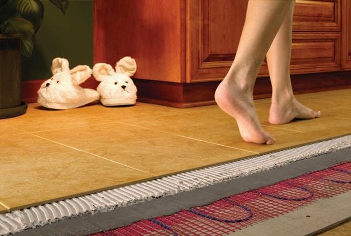 Система подогрева пола вызывает разные температурные деформации основания, плиточного клея и плитки. Если клей не эластичный, происходит отрыв плитки.
