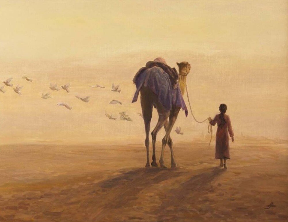 Иллюстрация - репродукция картины "Девочка, ведущая верблюда" (холст, масло) Работа современной российской художницы и поэтессы Алёны Лариной.