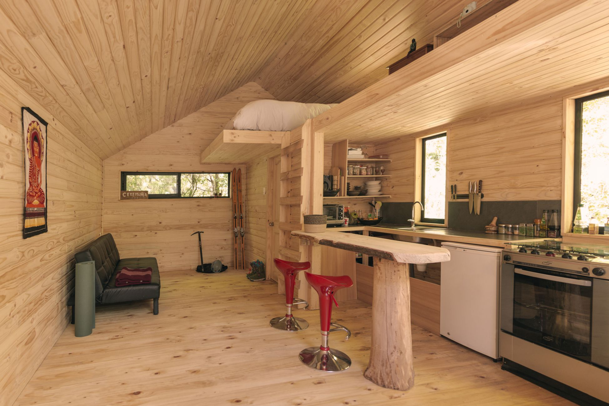 Пристанище скалолазов, о котором пойдет речь, находится в Las Trancas (Чили), среди гор, предлагающих экстремальные виды спорта. Так как заказчики предпочитают активный отдых на открытом воздухе, большой дом им был попросту не нужен.