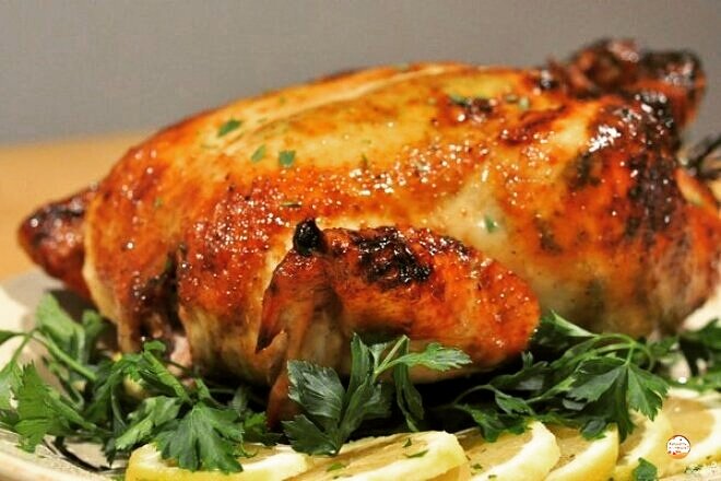 Жареная курочка...Сделаем маринад,смешаем соевый соус,горчицу,хрен,чеснок,соль,перец,обмажем курицу и даём постоять полчаса.Затем ставим в духовку на 40 -45 минут.Приятного аппетита!