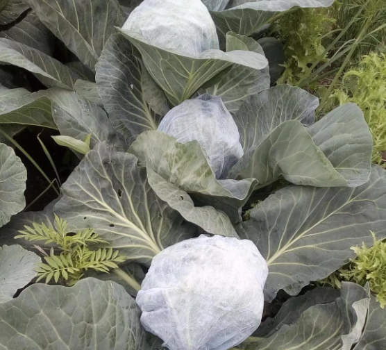 Раньше, я обрывала нижние большие листья и укрывала ими кочаны как шапочкой. Но второй год использую медицинские и мне так нравится больше. В отличие от поверхностного укрытия листьями капусты, шапочка защищает еще и от крестоцветной блошки.