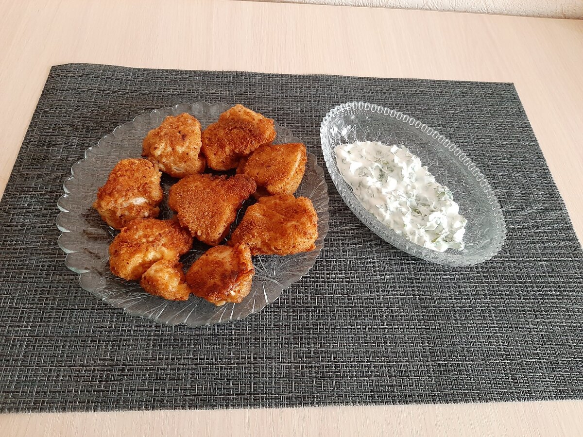 6. Каждый кусочек филе обвалять сначала в муке, потом в яйце и затем в сухарях.