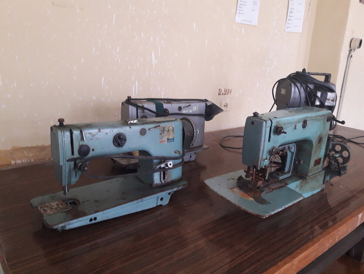 Зайдя в помещение, мы ахнули. Такое ощущение, что швеи только что встали и вышли по своим делам. Швейные машинки стояли вдоль окон, вокруг - лекала для разной одежды, светильники, чтобы работать в темное