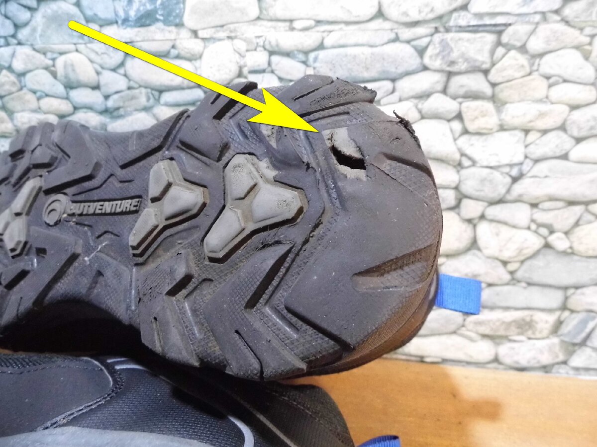 Поставленная набойка имеет толщину 6 миллиметров - хватит надолго, с решёткой уже ничего не случится - её просто нет, а на переднюю часть подошвы в будущем можно выполнить такую же наклейку.