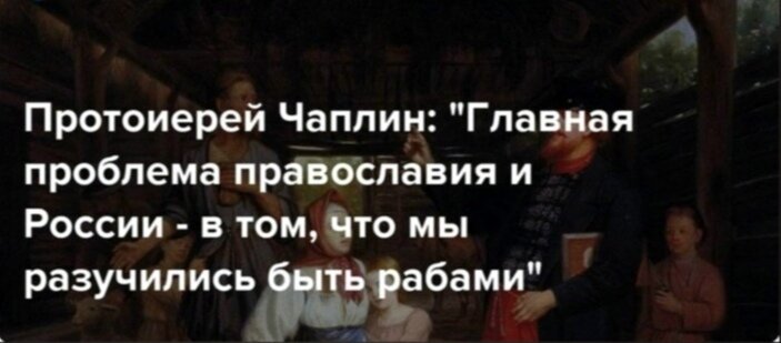 Как сектанты промывают мозги простым и наивно-доверчивым людям В 2016 году в религиозном православном журнале “Благодатный огонь” вышла статья протоиерея Алексия Чаплина “О потерянном рабстве и рыночной свободе”, в которой священник называет отсутствие рабской психологии главной проблемой России. Цитирую: "Главная проблема современного Православия и, собственно говоря, России (потому что России нет без Православия) – это то, что мы разучились быть рабами. Христианство – это религия сознательного и добровольного рабства. Рабская психология – это не какой-то скрытый подтекст, а норма мироощущения для православного христианина". (с) протоиерей В. Чаплин __________ проЧИТАТЬ дальше ВЕСЬ МАТЕРИАЛ ЦЕЛИКОМ - ЭТО умышленное МАНИПУЛИРОВАНИЕ ЧЕЛОВЕЧЕСКИМИ МОЗГАМИ и ДУШОЙ ВЫ МОЖЕТЕ в источнике - публикация доступна на официальном сайте журнала, опубликовавшего текст Чаплина. У данной религии все признаки секты налицо. Понравился материал? Делитесь им с друзьями в соцсетях! мы ВКо
