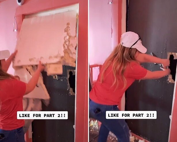 Проснувшись утром, мать Миранды решила вскрыть стену, чтобы посмотреть, не находится ли за ней действительно таинственная дверь. Она вооружилась молотком, а дочь снимала весь процесс на видео.