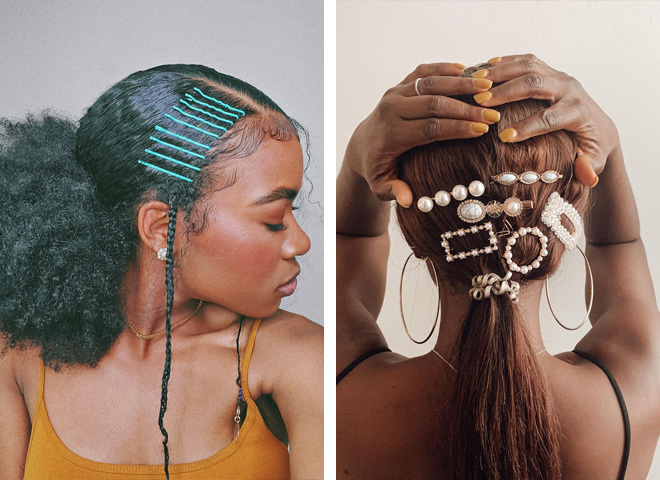 Элегантные зажимы для волос - стали очень актуальными в этом сезоне, модницы со всего мира сочетают их в различных образах. Они появились на подиумах еще в 2018 году, но популярными они стали только в сезоне весна-лето 2021.