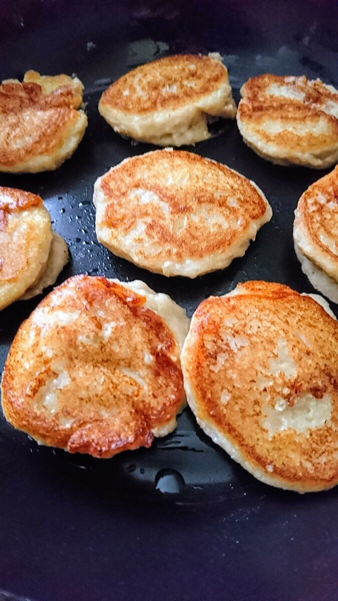 Я их делаю из каши (можно из вчерашней) и бананов. Без молока, яиц. И даже без сахара! Если у вас есть сковорода с хорошим антипригарным покрытием, можно обойтись даже без масла. В этом случае надо просто накрывать крышкой и тогда пышки будут запечёные.