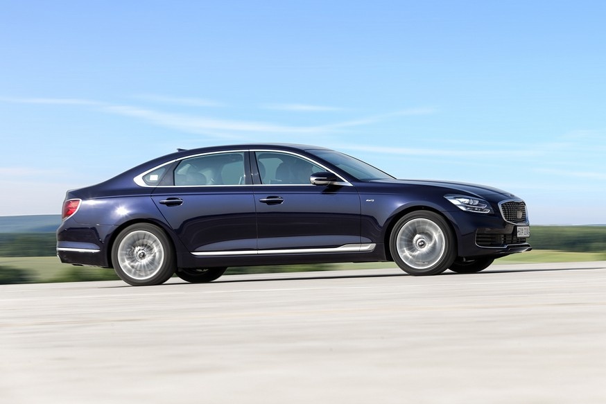 «Четырехдверка» получила новую головную оптику: фары вытянулись и лишились сдвоенных ходовых огней. Двойных секций нет больше на корме, к тому же фонари, хоть на свежих снимках этого и не видно, теперь «пронзает» светящаяся полоска (об этом мы знаем благодаря предыдущим уловам папарацци). Кроме того, K9/K900 достались иные радиаторная решетка и бамперы, а задний номерной знак переехал с крышки багажника ниже. Пока неизвестно, изменились ли габариты. Длина дореформенного седана равна 5120 мм, колесная база – 3105 мм.