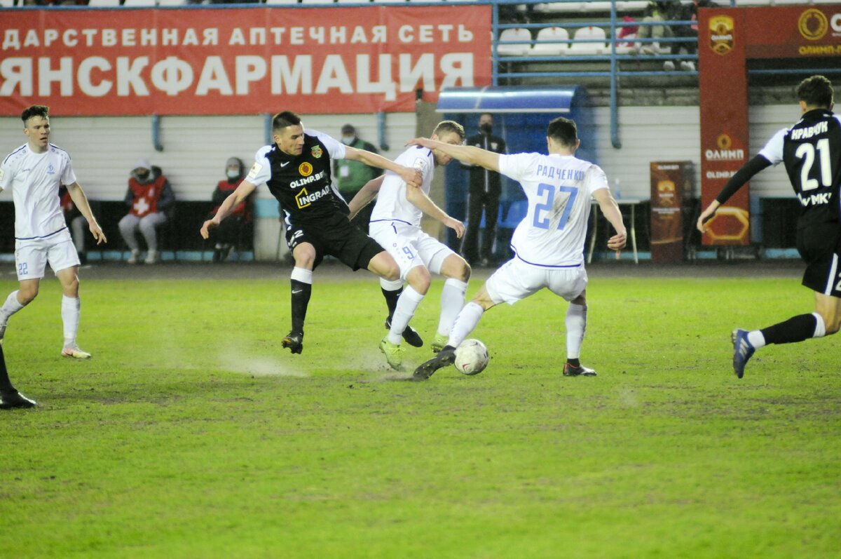 Не остались в долгу и футболисты «Динамо». Спустя шесть минут брянцы заработали стандартное положение на правом фланге, Владислав Дрогунов низом прострелил в штрафную, а там мяч после серии рикошетов оказался в руках у Виталия Ботнаря.