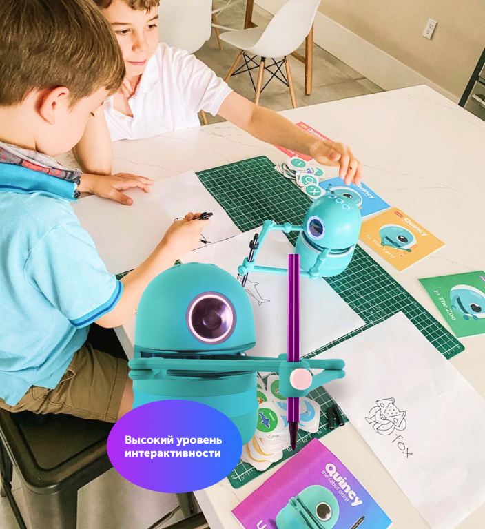 Материал создан при поддержке Amazon Первая игрушка, которая умеет рисовать сама и научит этому вашего ребенка · Уникальная новинка · Помощь родителям · Одновременно полезно и интересно · Учит не только рисовать, но и читать, писать и считать · Необычный и безопасный друг для вашего ребенка Обучение ребенка в трех направлениях Quincy делает процесс обучения непринужденным и максимально увлекательным! 01 Рисование Робот-художник оснащён большим количеством картинок, начиная от животных и заканчивая домашним обиходом. Quincy пошагово объясняет ребёнку, как правильно и легко рисовать, применяя профессиональ 02 Английский язык Робот проговаривает нарисованные предметы на «чистом» английском языке. Кроме того, он учит писать названия нарисованных предметов. Это все дает возможность малышам уже с первых лет жизни приобщиться к английскому языку.ные методики. 03 Робототехника Малыш будет учиться взаимодействовать с современными интерактивными технологиями, за которыми будущее. Электронны