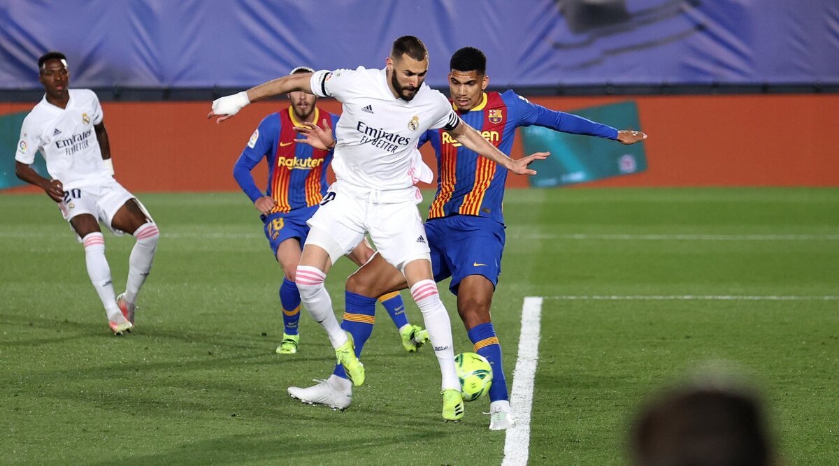 - Открытый второй тайм на встречный курсах. Тоже скорее инициатива Кумана: переход на 4-3-3 с подключениями порой сразу двух полузащитников в штрафную и, разумеется, уменьшение числа ЦЗ привело, с одной стороны, к тому, что “Барселона” сразу стала контролировать мяч выше, ближе к штрафной, не задерживая его в ногах защитников - вместо Лангле или Мингесы мяч теперь чаще получали Бускетс и Де Йонг, сразу же отправлявшие его вперед, - и, как следствие, усилившемуся атакующему давлению каталонцев - много времени у чужих ворот, больше комбинаций и креатива; с другой - к еще более острым контратакам “Реала”: теперь и пространства за спиной у обороны “Барселоны” стало больше, ведь мяч они держали выше, и игроков сзади каталонцы оставляли меньше, так что почти каждая потеря с неудачным контрпрессингом превращалась в забег на 50 метров с, в лучшем случае для гостей, ситуацией численного равенства.