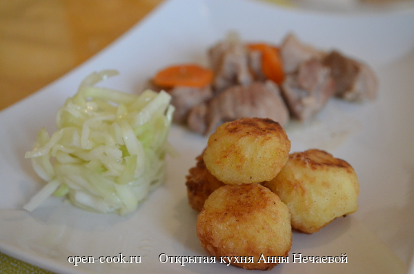 Многие из нас сталкиваются с проблемой оставшихся блюд со вчерашнего дня. У нас такое случилось с картофельным пюре. Обычно я просто разогреваю его с яйцами на обед. Но тут меня осенила идея сделать картофельные колобки. Интересно получается, кстати, при подаче в качестве гарнира, но можно использовать и как закуску с макательным соусом.