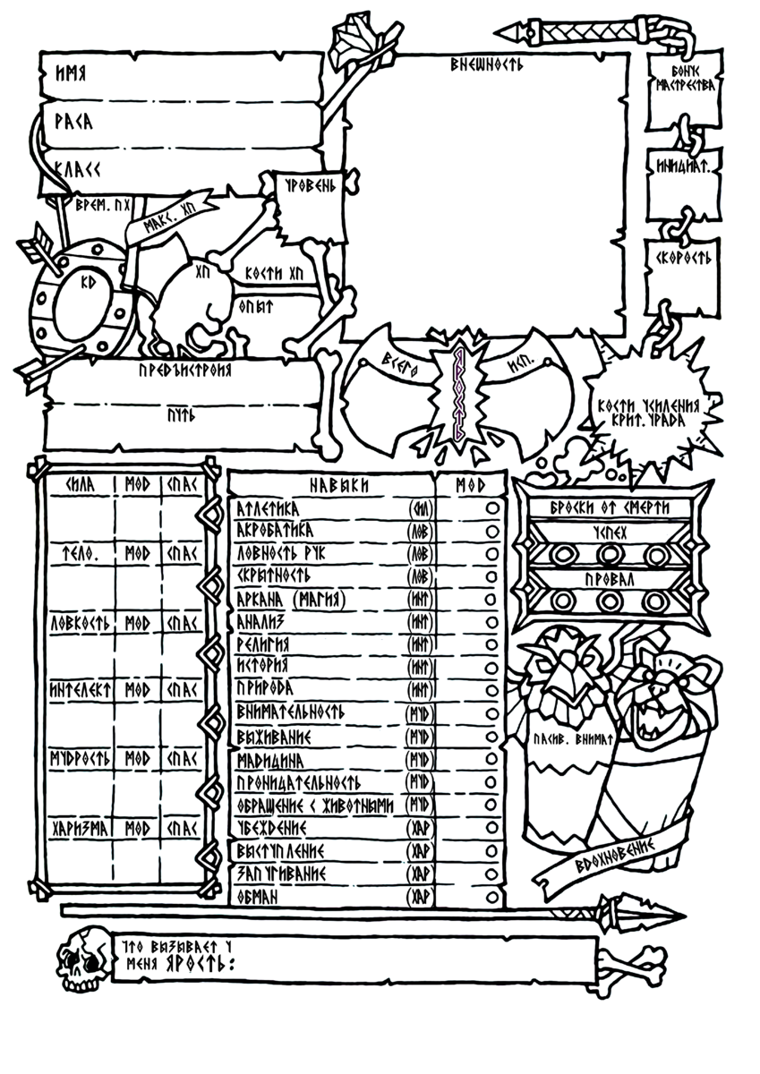 Вы можете скачать очень красивый, тематический лист персонажа для днд 5 на русском тематика варвар.