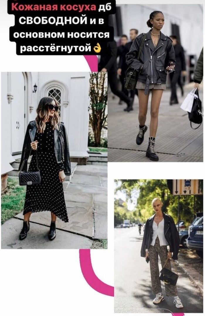 Сначала покажу вам несколько образов с косухами, про которые мы уже говорили. Никаких приталенных силуэтов! Классическая косуха свободного кроя будет актуальна всегда. Помните об этом, когда делаете покупку.