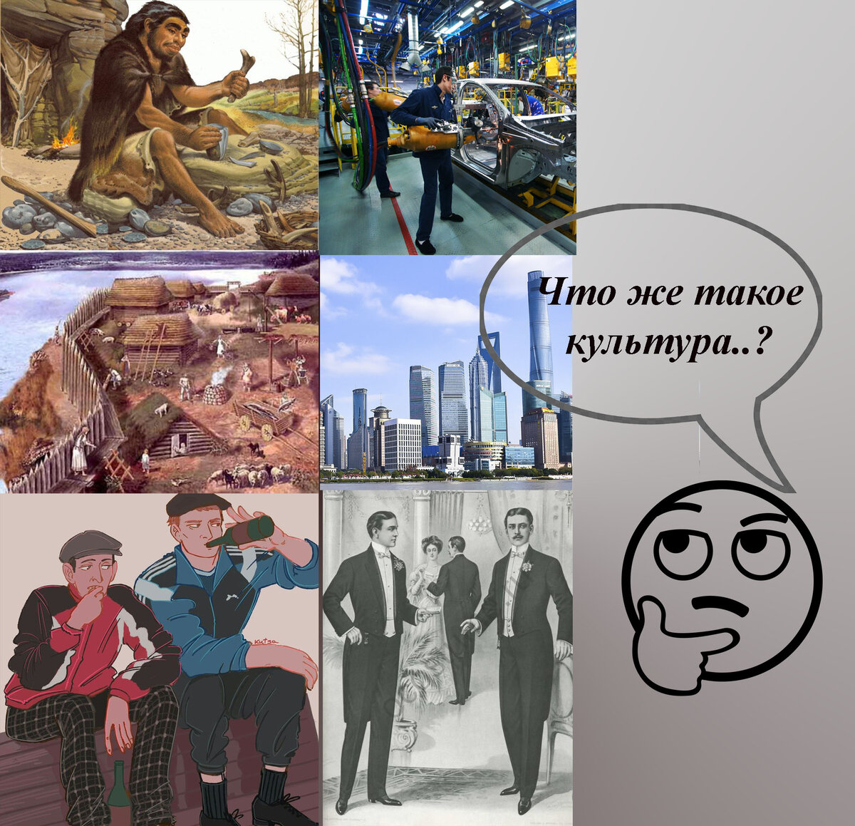 Величественные дворцы и храмы, шедевры классической музыки, и архитектуры, способы добычи огня и каменные орудия, одежда, и этикет, религия и литература все это является совокупностью достижений человечества в производственном, социальном и духовном отношении, а значит, это можно назвать человеческой культурой в широком смысле слова.