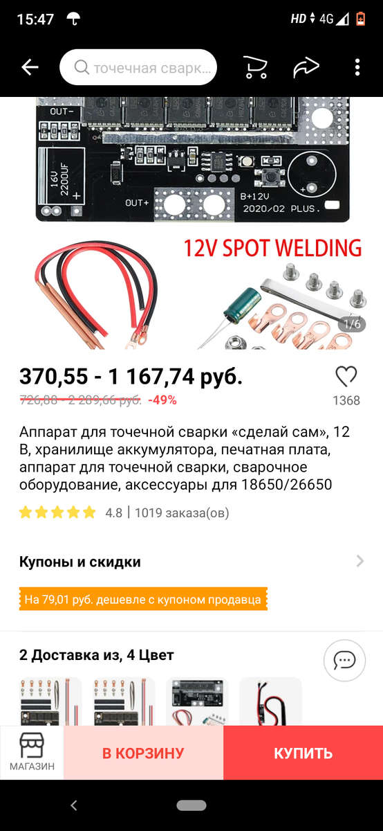 Долгое время при сборке батарей на 18650 я их паял. Это не только не удобно , но и не безопасно. Так как могут и взорваться . Решил я купить апппарат для сварки у китайцев и заказал вот такой