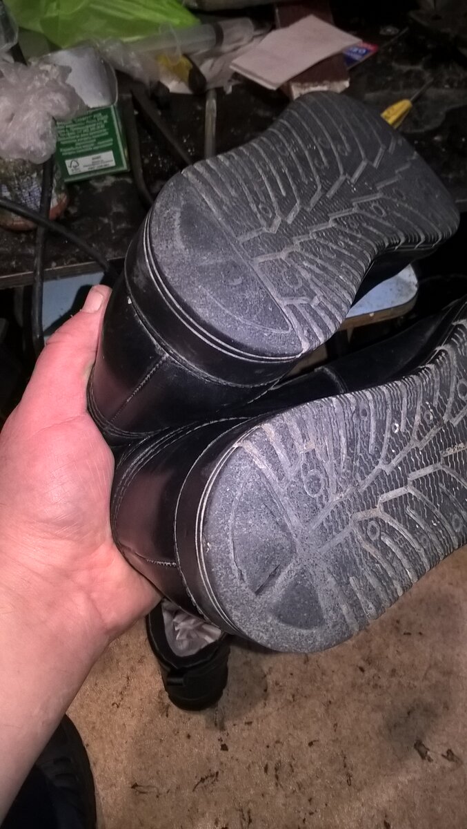 Клиент принес кроссовки. Сношена задняя чать подошвы. Мокнет нога.