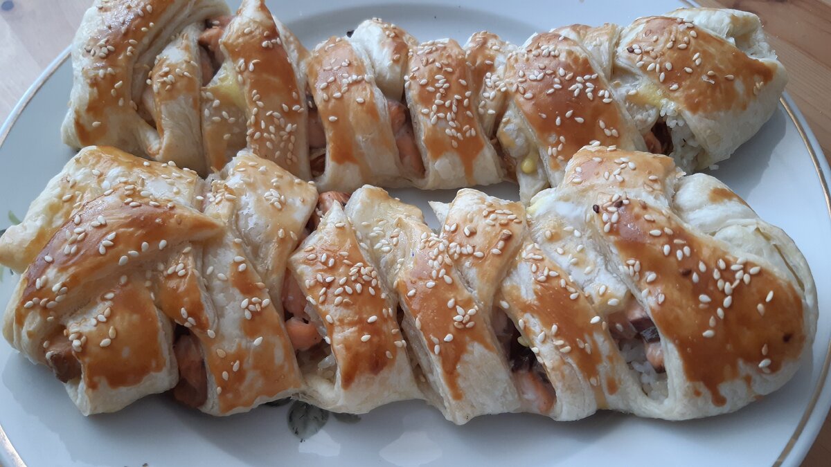 Я купила прекрасного качества горбушу. И хотелось с ней приготовить что-то очень вкусное. Дома был рис и слоеное тесто в морозилке. Решила, что быть слоеному пирогу с рисом и горбушей.